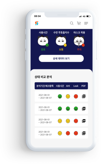 진료와 보험 진행시 필요한 최근 사용한 양압기 기록지를