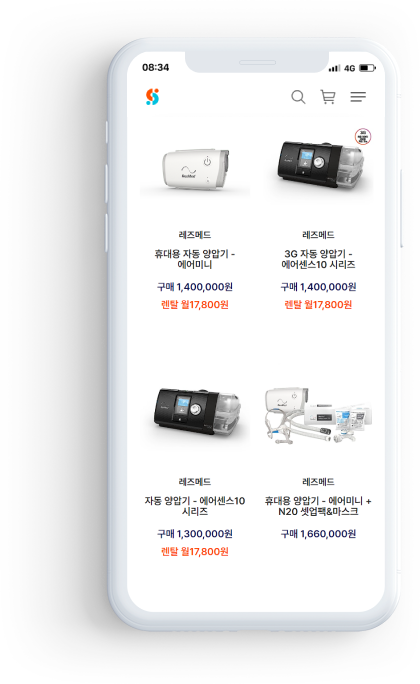 각종 브랜드별 양압기와 마스크를 구매할 수 있으며,
